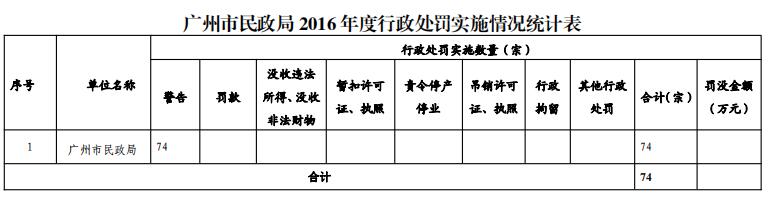 本局2016年度行政处罚总数为74宗,罚没收入0元。